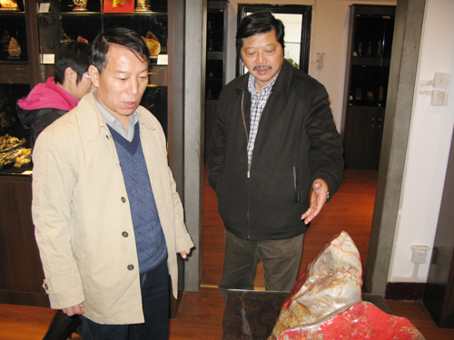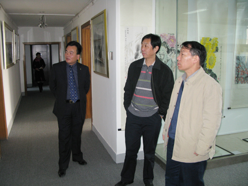 2008年10月24日,江苏省法制办主任孙如林(图一左)在江苏天圣达集团董事长吴惠明(图一右)、江苏天圣达集团公司法律顾问储建荣(图二左)和无锡天圣达文化艺术品公司副总经理邹浩德(图二中)的陪同下,参观了无锡名人书画艺术博物馆和无锡天圣达文化艺术品有限公司。