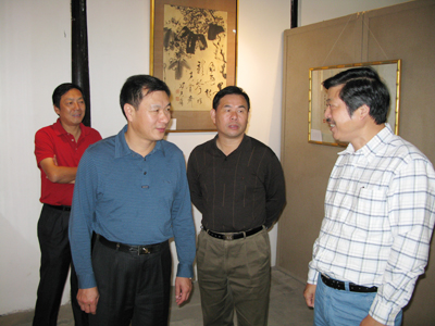 2008年10月11日,无锡总参308所政委(左二)、副所长(右二),在江苏天圣达集团董事长吴惠明(右一)的陪同下,参观了无锡名人书画艺术博物馆和无锡天圣达文化艺术品有限公司。