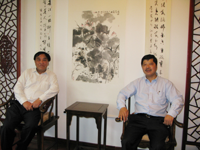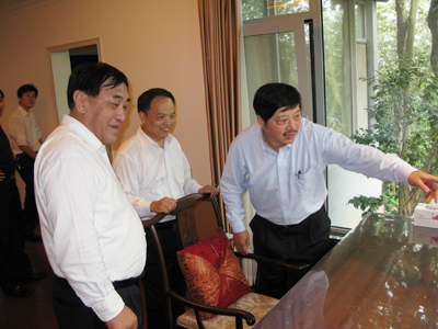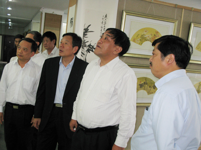 2008年10月22日,中国纺织工业协会副会长王天凯(图一左)、副秘书长夏令敏(图一中),在江苏天圣达集团董事长吴惠明(图一右)的陪同下参观了无锡名人书画艺术博物馆。